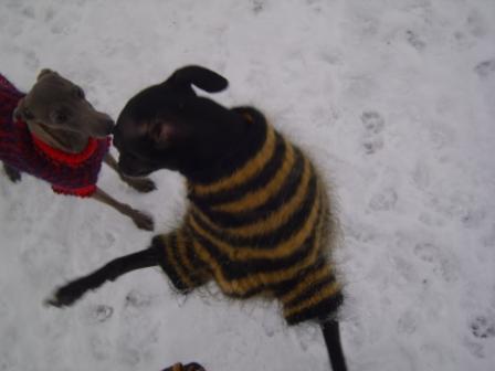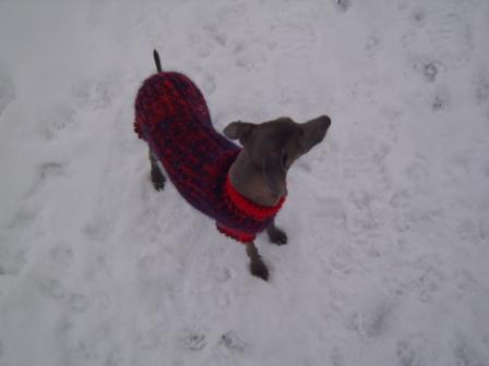 Glück ist nicht nur, wenn man Hundefreunde und liebe Menschen um sich hat, Glück ist auch, wenn man mit einem warmen Pullöverchen der Kälte trotzen kann.
