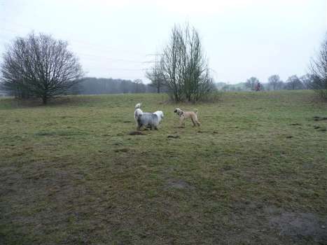 Besuch in NRW. DIE Hundewiese erkundet und viele Spielkameraden getroffen. Das eigene Rudel verloren und wiedergefunden! Waren wir froh - wiehpwiehpwiehp! Beim nächsten Mal toll durch den mMatsch gerannt und gleich die Füße ein wenig gewaschen. Sonem Jungscher gezeigt was Sache ist. Zwei Bobtails bestaunt, die waren vor lauter Fell ganz rund. Abbrausen Zuhause war voll blöd! Doch wer mit aufs Kuschelkissen will kam da dann nicht drum herum.
