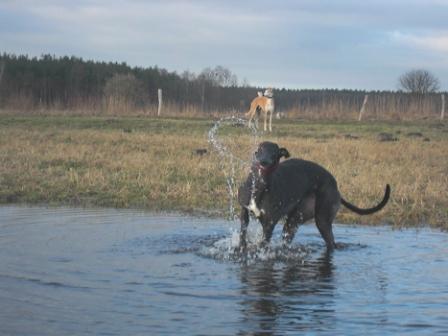 Der Schnee schmilzt und bei Daisy (Nähe Berlin) ist er schon großen "Pfützen" gewichen, in denen man herrlich herumtoben kann.
