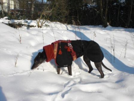 Windhunde sind absolut freie Wesen, die super sensibel sind und da muß man als Mensch in mancherlei Hinsicht zurückstehen. Kate ist zwar einfach zu händeln, das heißt aber ständige Kontrolle des eigenen Verhaltens, damit sie sich keine Unarten angewöhnt. Stehe ich z. B mit ihr im Park und rufe, dann kann es sein, daß sie grade nicht kommt, da hilft kein Geschreie, Gezerre, Gemecker. Ich muß dann halt als "Leinentrottel" zu ihr hingehen und versuchen, sie zu mir zu bekommen. Das ist bei anderen Hundeleuten dann als schlechtes Benehmen des Hundes abgestempelt. Dann muß man über den Dingen stehen und darf nicht sauer sein. Das birgt immer eine gewiße Schwierigkeit in sich. Ich habe da kein Problem mit, weil ich den Freigeist bis zu einem gewißem Maße gut akzeptieren kann, d. h. sie muß keine "Kunststücke" machen, sollte aber einen gewißen Grundgehorsam haben. Wenn man gut drauf achtet, geht das auch sehr gut. Viele können das nicht, weil sie sich persönlich beleidigt fühlen. Es heißt also nachdenken, weil die Windis ja auch noch superschlau sind, wir haben aber auch einen Grey, der am leichtesten zu führen ist (steht auch in jedem Buch). Dann habe ich eine gewiße Vorerfahrung mit einem Pferd, das ganz ähnlich zu behandeln ist. Von daher sollte man sich schon überlegen, ob man bereit ist sein Leben mit Hund so zu führen und alles darauf abzustimmen.