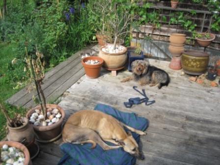 Heute habe ich den Hasenstall geöffnet und gefüttert, während Ice auf der Terrasse lag. Sie hat es nicht mal für nötig befunden aufzustehen, geschweige denn diese Chance für sich zu nutzen.