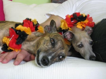 Nachdem England und Italien nun raus sind, haben sich Sam (engl. Whippet) und Valentino (ital. Windspiel) überlegt, überzulaufen;-)))