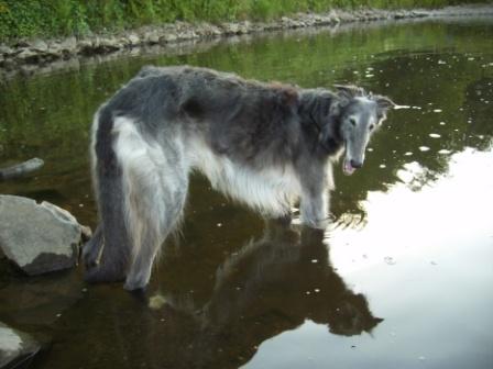 "viele Grüße aus dem hitzegeplagten Ruhrgebiet! Peter geniesst es mittlerweile, dass wir den Fluss vor der Haustür haben, nur das Bäuchlein darf nicht nass werden!