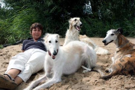 Ein Schwung aktueller Fotos aus Ostfriesland: Greyhound Gigi und den beiden Barsois Katinka und Cao geht es prima.