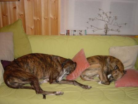 Jolanda schickt auch mal wieder Post. Ihre Familie ist inzwischen von Südschweden nach Lappland gezogen. Dort gab es letzten Winter -15 bis -41 Grad! Zum Glück haben Jolanda und ihre Whippetfreunde superwarme Mäntelchen.