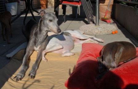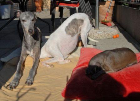 Beim Einzug hörte ich noch auf den schönen Namen Oceanie, jetzt bin ich nur noch die MAITE. Ich weiß ja nicht, was das bedeutet, ich denke mal, CHEF. Denn ich bin Chef von einem Rudel wildgewordener Kleinlinge, die man gut betreuen muß. Hier zum Beispiel mache ich einen der Kleinlinge sauber...