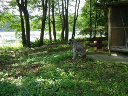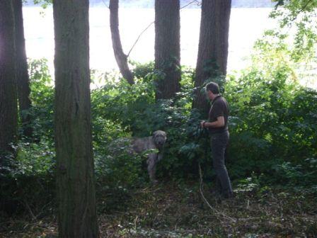 Die ängstliche Hündin kommt langsam aber sicher in ihrem neuen Zuhause an. Noch muß sie per Leine gesichert werden, damit sie im riesigen (komplett eingezäunten) Garten/Wald nicht abhanden kommt.