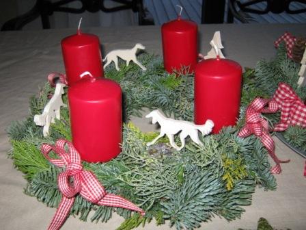 Die liebe Rabea hat uns per Post jeweils einen Afghanen-Adventskranz und einen Barsoi-Greyhound-Whippet-Windspiel-Kranz geschickt.