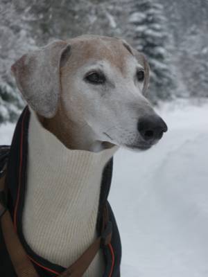 Er ist topfit und genießt gut gewärmt auch unsere eingeschneite Schwarzwaldlandschaft. Allerdings läßt er sich nur mit viiiiel Leckerlies aus dem Haus locken und dem Versprechen, nach dem Ausflug den Kaminofen ordentlich nachzufüllen...:-)