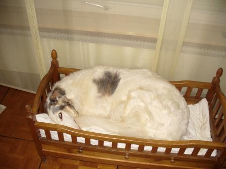 Unserem Bobby, der abgeschoren zu uns kam, geht es hervorragend. Nicht nur, dass er in ganzer Fellpracht zu bewundern ist, er hat sich auch ein ganz besonderes Lieblingsplätzchen ausgesucht, das ehemalige Kinderbett seines Frauchens;-)