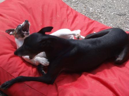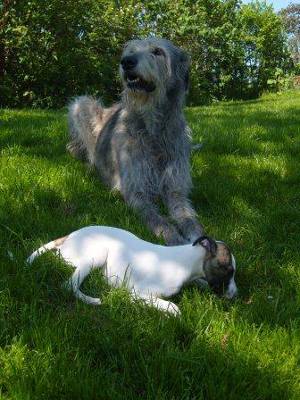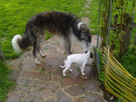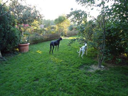 mit Terry im Garten, bin schon fast so groß wie ein Galgo!