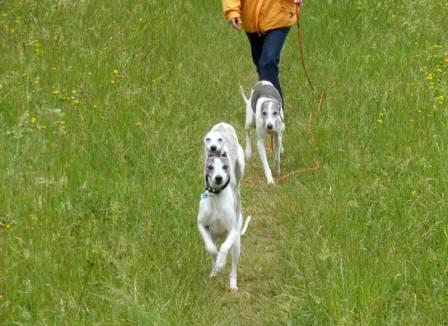 "..... mit Pajti klappt alles sehr gut. Er ist ein extrem friedlicher Geselle. Nur Milow ist etwas eifersüchtig. Da muß er sich aber daran gewöhnen. Nachdem es gestern nicht mehr so heiß war, waren wir auf der Hundewiese spazieren.