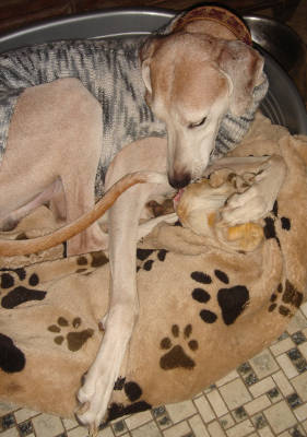 Hier kann man Farino mit Bärchen sehen, wobei Bärchen ein frisches Rinderohr ist...:).