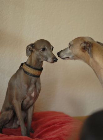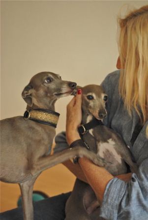 Barnaby (ebenfalls Inventar) schnüffelt an Mio