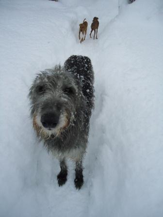 Hier bitte - wir sind vollauf damit beschäftigt, Wege für unsere Hunde freizulegen.