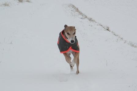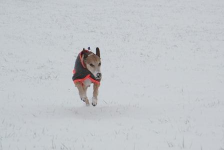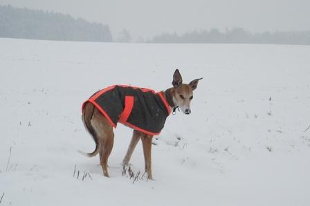 Hiermit sende ich endlich ein paar Winterbilder von unserem Lester. Im Schnee läuft er ganz gerne und buddelt trotz der weißen Pracht liebend gern nach Mäusen. Als bei den News anfang Januar stand, daß die Hunde nicht raus oder gleich wieder rein wollten, konnten wir das nur bestätigen... naßkalt mag unser Whippi auch nicht so gerne, trotz Mantel. Ansonsten ist der Lester fit und war noch nie erkältet. Außerdem ist er sehr leise, als wir ihn bekommen hatten, dauerte es mindestens 4 Wochen bis wir ihn das erste mal bellen hörten (ein anderer Hund hatte hinter dem Zaun gebellt, da mußte er ja schließlich auch mal bellen).