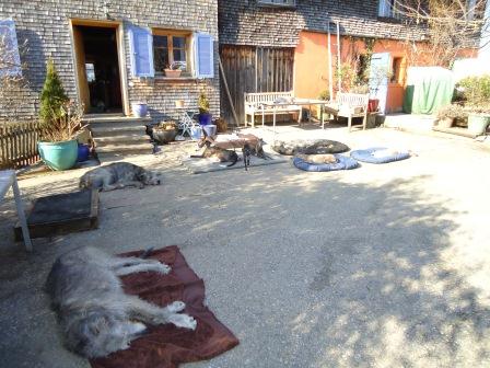 Blümchen ist noch nicht übern Berg, da sie trotz Antibiotika-Wechsel immer noch Fieber hat, lässt auf einen viralen Infekt schließen. Das muß das kleine Wölfle nun aushalten. Immerhin hat sie heute Morgen ein klein wenig gefressen und kommt in den Garten, wenn wir mit den anderen vom Spaziergang zurück kommen. Sie geht so gerne spazieren und ist immer so lustig dabei. Heute abend gabs Hühnerbrühe.