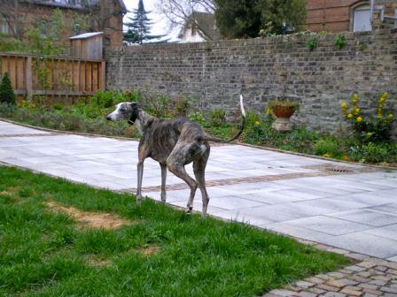 "Hast Du gut ausgesucht den Paco, auch wenn Nicolai (noch) sehr beleidigt ist, “den haben wir doch gar nicht gebraucht”. Paco ist ein ganz lieber, freundlicher Schatz, der möglichst alles richtig machen möchte und vermittelt, dass er sich freut. Heidi hat ihm natürlich gleich klar gemacht, wer hier die Seniorchefin ist und Sofie hält ihn mit Gezicke auf Abstand, die Greys sind dagegen interessiert und wedeln ihn freundlich an, nur als er ins Bett wollte, wo Dama schon war, hat Dama ein bisschen geknurrt. Das gemeinsame Futtern in der Küche ist problemlos. Ein Sofa hat er sich schon ausgesucht, da schläft er im Moment auch nachts, die Dreambays hat er noch nicht ausprobiert, ich glaube, er findet sie zu klein. Der Garten gefällt ihm, er nutzt die längstmögliche Strecke für wilde Sprints. Edith (Anmerk. das ist die Schwiegermama) ist ihm noch nicht ganz geheuer, die Leckerlis sind ja in Ordnung aber der Stock..."