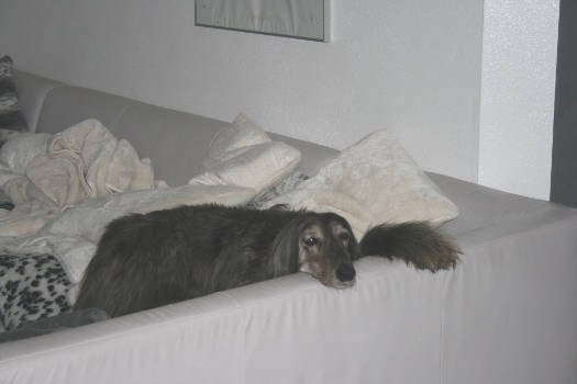 Er hat in seinem neuen Zuhause zwei Kumpels und einen Kater. Nicht zu vergessen zwei Menschen, die zwar nicht afghanenerfahren, dafür afghanenverrückt sind.