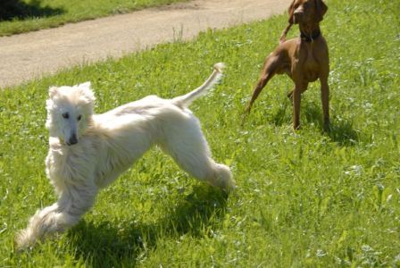Ein paar neue Fotos gibt es von Bobo, Yoshi, Sam und Fini unserem Barsoi-Oldie, der sich auch nicht erklären kann, warum alle Welt einen seiner jungen Kollegen will - keiner weiß die Gelassenheit des Alters zu schätzen;-)