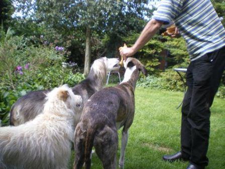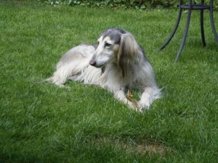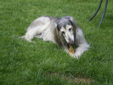 An einem wunderschönen Sommertag nach einem herrlichen Spaziergang gabs Zuhause im Garten noch ein Rinderohr, schreibt ihr Frauchen.
