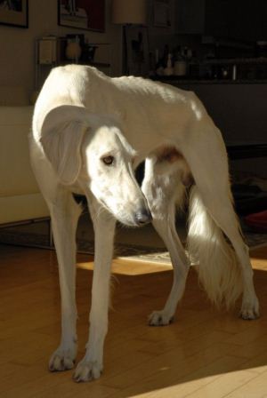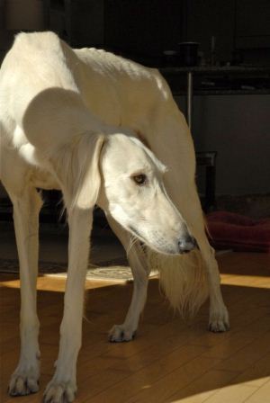 Seit gestern Abend begeistert ein drei Jahre alter Salukirüde sein Pflegefrauchen und auch das Pflegerudel;-)