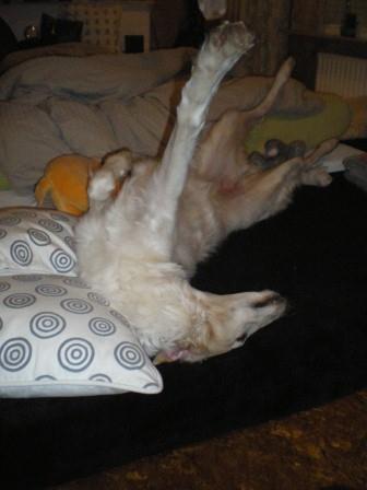 Inzwischen hat sie auf jeder Etage alle Liegeplätze ausprobiert. Nachts schläft sie mit Dolores und mir im Schlafzimmer auf einer eigenen großen Matratze. Kopfkissen inklusive! ;-)