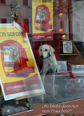 Ja das ist unser Saluki Lennox, der seinen eigenen Laden gerade hütet, weil Frauchen kurz weg ist. :)