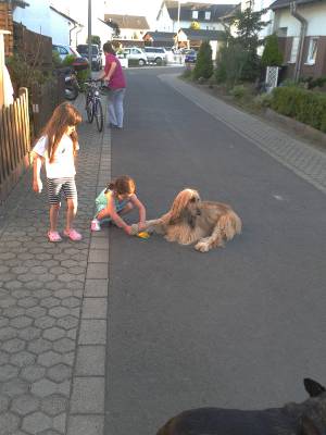Auch von Ilka (vermittelt März 2011) gibt es Bilder. Leider verstarb Ihr Frauchen dieses Jahr, so daß sie nun eine neue Familie hat. Aber eine ganz besondere wie man sehen kann. Sie hat nun kleine Hundefreunde und ein sehr entspanntes Leben bei ihren lieben neuen Menschen. Dazu muß man sagen, daß Ilka auch eine ganz besondere Afghanen-Hündin ist, denn man kann sie hervorragend frei laufen lassen.