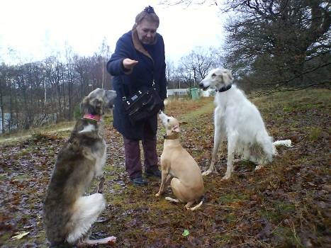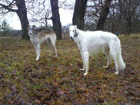 Jil & Ayla haben Fotos von sich und ihrem Barsoi-Rüden geschickt. Jil heißt ja jetzt Lieselotte und sie ist in den letzten vier Monaten noch 8 cm gewachsen. Den Traum von der kleinen Barsoi-Hündin ist damit geplatzt... :)