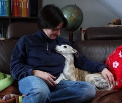 ABER alles ist bestens. Wir sind hochzufrieden und wünschen uns mehr solcher Flo´s und Caro´s;-) Auch der kleine, zweibeinige Paul hatte seinen Spass bei uns, Enzo war sehr interessiert, Gigolo machte ein Freudentänzchen auf dem Tisch und zeigte Flo sein zahnloses Grinsen. Dieser wurde bisher nur von seinem Dackel angegrinst, mehr oder weniger;-) und nach anfänglicher Zurückhaltung (der Dackel war wirklich bissig) verschwand im Nu alle Scheu und es wurde eifrigst gekuschelt.