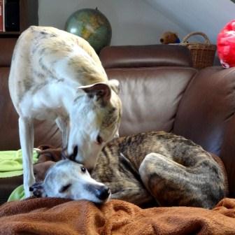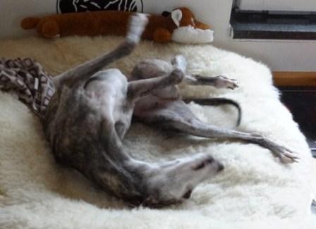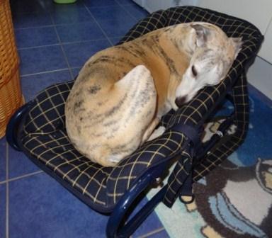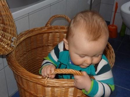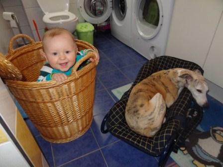 Da Fili die Liege von Klein-Paul bevorzugt, muß der Mini mit dem Wäschekorb vorlieb nehmen.