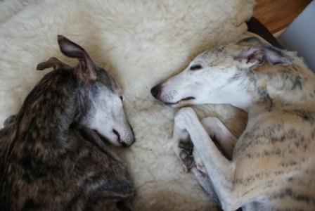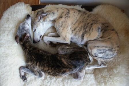 "Ganz liebe Grüße von deinen beiden Mäusen! Dass uns bei den zwei Goldstücken niemand zuvor gekommen ist versteh ich genausowenig, wie dass eure beiden Greys nicht an den Mann zu bringen sind (hätten wir ein Haus... ;o). Oder dieser hübsche Whippet Dickie - also wären wir nicht schon fündig geworden, ich hätte längst für ihn angerufen :o) Neulich im Fressnapf hab ich gehört, wie eine Frau der Verkäuferin vorgejammert hat dass ihr Hund gestorben ist und sie nicht weiß ob sie sich nochmal einen zulegen soll, weil sie ist ja auch nicht mehr die Jüngste. Sagt die Verkäuferin ausnahmsweise mal was vernünftiges: warum denn keinen älteren Hund? Ach nein, die hätten ja alle solche Macken, und je älter die sind umso weniger kann man da noch ändern. Hab mich natürlich nicht in fremde Gespräche eingemischt, geht micht ja auch nix an, aber ich find das immer traurig wie hartnäckig sich solche blöden Vorurteile halten. Als ob ein alter Hund nur aus Macken besteht!!! :o( Und der Satz "Aber dann habt ihr die ja wieder nicht lang!" hängt mir eh schon längst zu den Ohren raus! Ach, so ist das eben...Ich find's klasse dass es Leute wie euch gibt, die am laufenden Meter neue Chancen an Hunde verschenken :o)