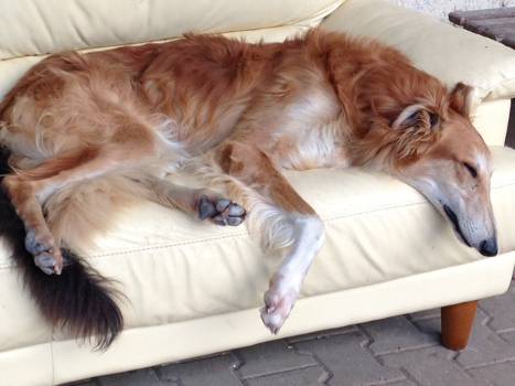 Auf einer unserer Barsoi-Pflegestellen gab es endlich :) das obligatorisch Draußensofa für den Sommer.