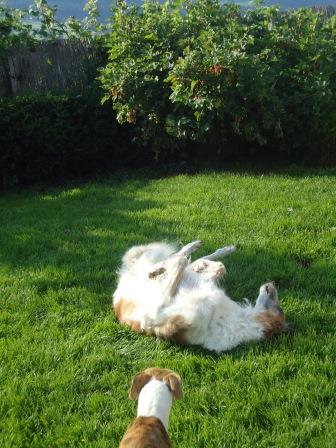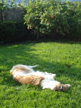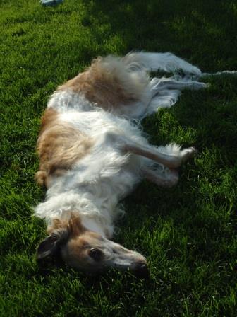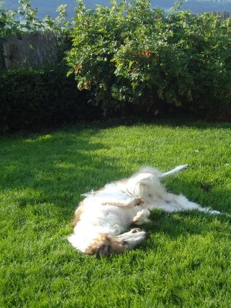 Leo war froh, wieder Zuhause zu sein, er wollte gar nichts mehr wissen gestern. Dafür hat sich Patenbarsoi Boris zum ersten Mal so gefreut, dass er sich im Garten aalte. Diesen Moment mußten wir doch schnell festhalten...