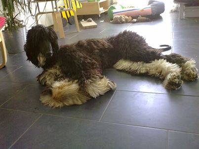 Bono war uns aufgrund aggressiven Verhaltens vermacht worden. Ein großer, stattlicher Kerl mit Energie bis zum Abwinken. Wir waren um ganz ehrlich zu sein, etwas ratlos, weil es doch immer weniger Menschen gibt, die noch einen "Echten" haben wollen. Mit echt meinen wir Afghane mit wildem Temperament. Nunja unser Bono hat auf unserer Pflegestelle jedenfalls lernen müssen, daß es tatsächlich Hunde gibt (die "sanften" Riesen), die ihm das Wasser reichen können.