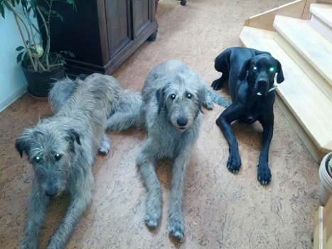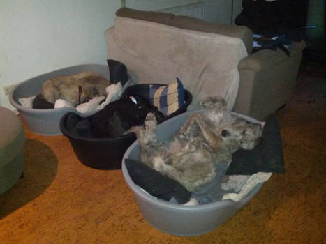 Hier gibt es Fotos von Tosca (ehemals Tessa, vermittelt April 2012) und unserer im August vermittelten Fee, die zusammen bei einem Doggen-Mädchen ein schönes Zuhause gefunden haben. Wie man sieht, machen die Drei alles zusammen. Naja, fast alles, denn das Kuscheln mit Junior genießt man dann doch lieber einzeln und ganz "für sich".