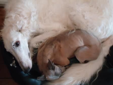 Alex war eine Bereicherung, in jeder Hinsicht. Ein echtes Seelchen, er konnte überall ohne Leine laufen und war immer unauffällig und ruhig. Eine Besonderheit... er liebte innig seine Stofftierchen, am allerliebsten hatte er Delfine oder Dinosaurier. Warum das so war, weiß niemand, aber als wir einmal eins nass vom Schneeregen im Hof fanden und es kurz auf die Fensterbank legten (und vergassen), spielte er Zirkuselefant, turnte auf einem Blumenkübel herum und versuchte, an den Delfin zu gelangen;-)