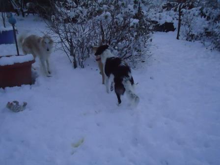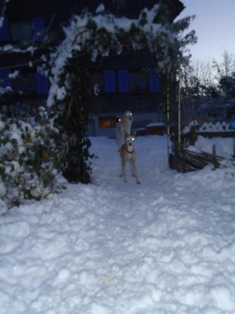 Nein, Gilov und Virgola heute Morgen um halb sieben (!) beim Spielen im Schnee. Pünklich zum ersten Dezember hat Frau Holle mal kräftig geschüttelt und all unseren Hunden eine Riesenfreude gemacht. Ok, uns auch, so hat man auch mit mehreren Hunden ein sauberes Haus.
