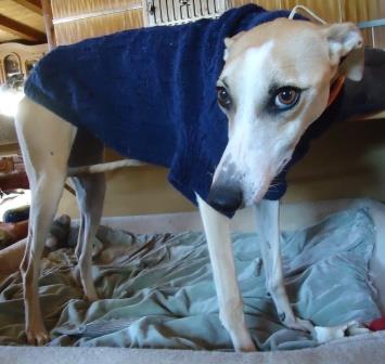 Vorgestern bekamen wir eine ganz süsse, kleine Maus anvertraut. Hera, eine Whippethündin sand-weiß, wird demnächst elf Jahre alt.