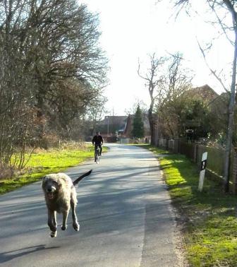 Am Samstag zog Joey in sein neues Zuhause. Er lebt jetzt mit einer IW-Hündin und zwei Barsois zusammen und hat sich schon gewundert über die "Kläffattacke" seiner neuen Freundin am Zaun. Da schlechte Angewohnheiten gerne abfärben, haben wir Joeys neues Frauchen darauf vorbereitet, dass der ruhige Kerl sicher auch bald Spass daran findet, fremde Menschen am Zaun zu erschrecken;-)