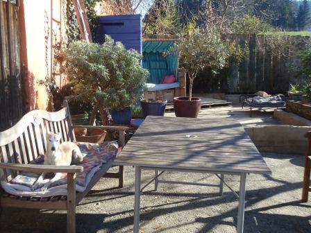 Baloo am Morgen ihres Auszugs von der Pflegestelle, noch schnell ein Sonnenbad nehmen....
