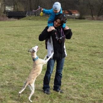 Erwachsene Hunde neu in die Familie aufzunehmen während ein Kind gerade zu krabbeln beginnt, das will natürlich gut überlegt sein. Es wäre unfair dem Hund gegenüber, wenn Kinder einfach nicht sein Ding sind, und unverantwortlich dem Kind gegenüber obendrein. Ich weiß gar nicht mehr wieviele Warnungen wir uns deshalb anhören mussten. Aber - zum Glück nicht von dir :o) Du hast unsere Auffassung geteilt, dass es den passenden Begleiter für uns auch "Second Hand" geben wird. Bei der Auswahl hattest du den richtigen Riecher. Deine Einschätzung der Hunde (und offenbar auch von uns) hat sich als absolut zutreffend erwiesen. Wir haben die beiden wirklich so kennengelernt, wie du sie zuvor beschrieben hast. Genau DAS war übrigens unsere Hoffnung, der Grund warum wir diesmal nur über einen Verein mit versierten Pflegestellen einen Hund (bzw. letztlich zwei ;o) suchen wollten: dass die Pfleglinge eben möglichst objektiv in den gängigen Alltagssituationen beurteilt werden können. Eure Erfahrung und Euer Einsatz sind hier wirklich unbezahlbar - danke nochmal dafür!!!