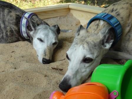Wir hatten mit unserem Duo von Anfang an eben NICHT doppelt soviel Aufwand, wie man vielleicht befürchten könnte, ganz im Gegenteil: gerade in der Eingewöhnung haben sich die beiden gegeseitig soviel Halt und Orientierung gegeben, das hat ihnen und uns diese Zeit sicher um einiges leichter gemacht! Ein seit Jahren eingespieltes Team, das erwiesenermaßen gut harmoniert, das ist doch außerdem der perfekte (Wieder-)Einstieg in die Windhundhaltung :o) Dass solche unzertrennlichen Paare meist schon etwas reifer sind sollte wirklich niemanden abschrecken. Wie heißt es so schön? Hunde werden nicht älter, die werden besser ;o)