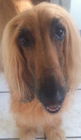 Neu in der Vermittlung ist eine 9 Jahre alte kastrierte Afghanen-Hündin Amneris.