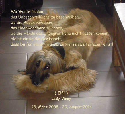 Unsere Elfi mußte wesentlich schneller gehen, als wir das alle erwartet hatten. Nur eine Woche zuvor war ein Lungentumor diagnostiziert worden und in den Folgetagen ging es ihr immer schlechter, so daß gar nichts anderes übrig blieb, als sie am 20. August einzuschläfern.