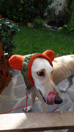 Sugar (vermittelt November 2013) hat sich für die bevorstehende kalte Jahreszeit ausgerüstet. Angesichts ihrer abgeschnittenen Ohren sicher eine gute Idee. Danke liebe Lisa für diese süßen Fotos!