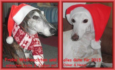 Heikes Weihnachtskarte mit Oskar (verm. 02/2013) und seiner Galgo-Freundin:-)