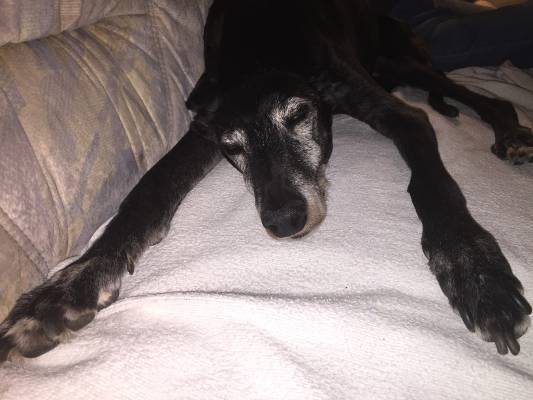 Es geht ihm dem Alter entsprechend soweit gut. Seine Hinterbeine wollen manchmal nicht mehr so, er trägt jetzt immer einen Haltegurt um den Leib und da kann ich im Notfall ihm immer schnell helfen."