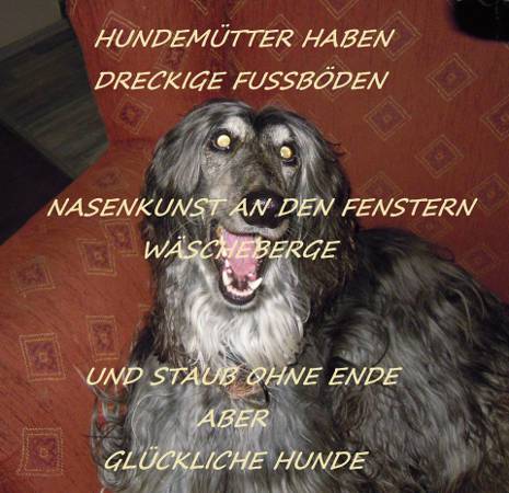 Es ist wohl wahr, daß unsere Afghanen v.a. um diese Jahreszeit viel Schmutz machen, doch wir hoffen immer noch, hin und wieder jemanden zu finden, der Lust zum Putzen und Kämmen hat.